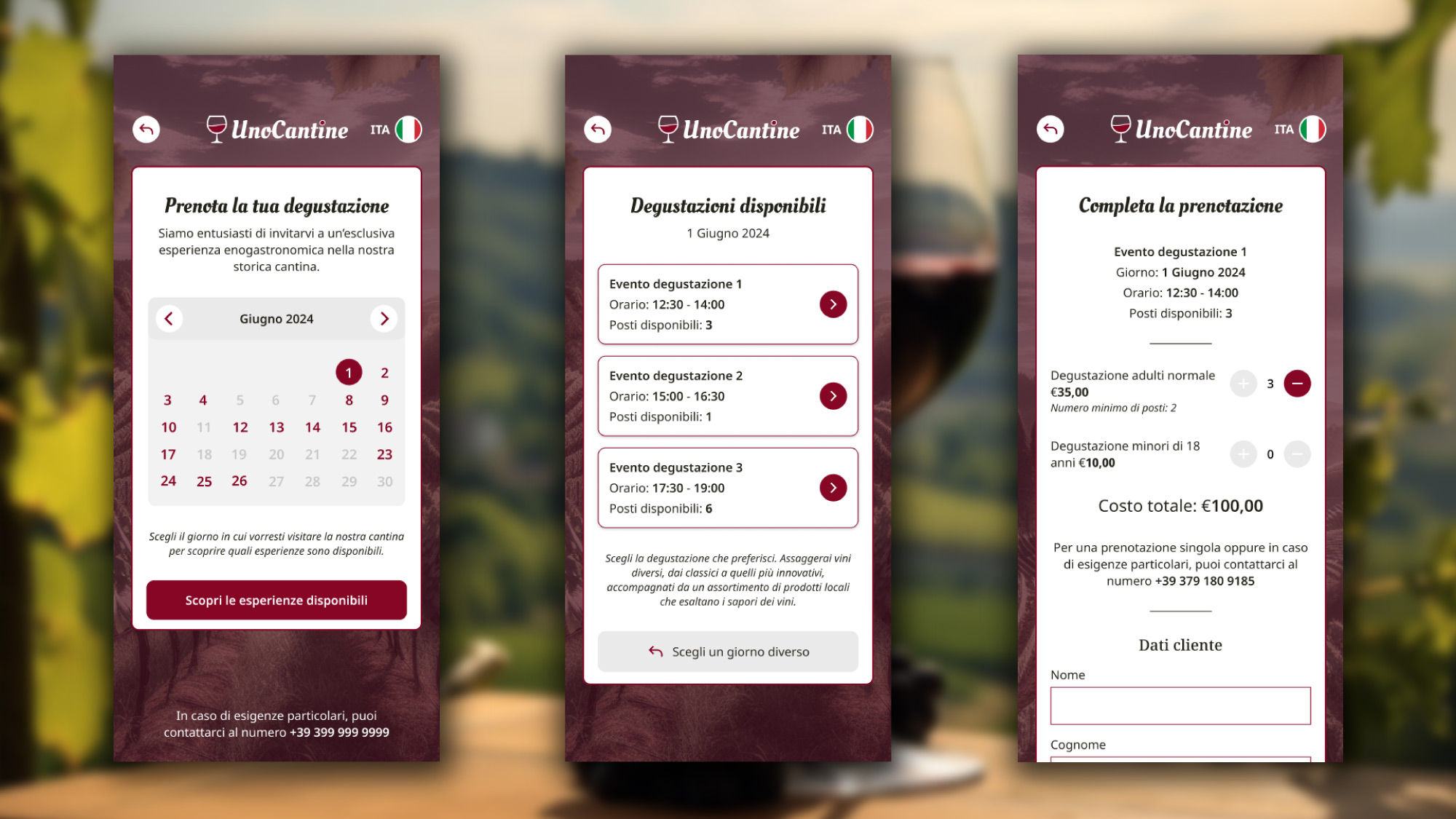 UnoCantine è il software gestionale progettato per semplificare la gestione delle prenotazioni di degustazioni ed eventi per cantine e ristoranti. Con un’interfaccia intuitiva e funzionalità avanzate, UnoCantine ti permette di ottimizzare ogni aspetto, dalla prenotazione online alla gestione delle disponibilità, fino alla personalizzazione delle promozioni. La nostra soluzione è ideale per chi desidera offrire un servizio impeccabile ai propri clienti, migliorare l’efficienza operativa ed aumentare la redditività.